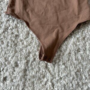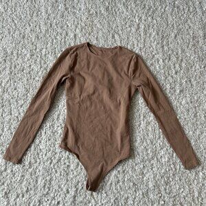 Abercrombie Soft Matte Seamless Long Sleeve Crew Neck Bodysuit Small Tan