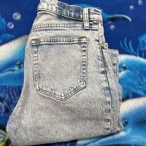 Size zero. No longer sold by retailer. Extremely comfortable straight leg jeans. These button up and do not have a zipper, so nothing pokes out when you sit down in them!