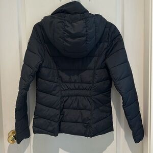 Length 23”. Two front zipper pockets. Packable Wind resistant. Water resistant fabric