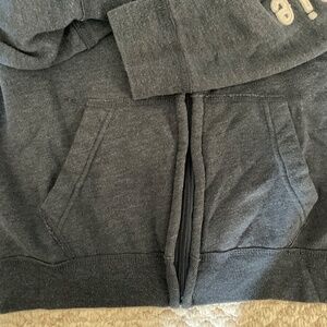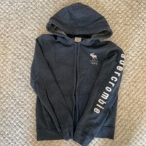 “Abercrombie” is written on the left arm of the hoodie - worn look on the letters
