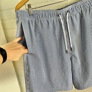 Abercrombie&Fitch Men’s swim trunk PinStripe Blue/White Pull-On Coastal XL