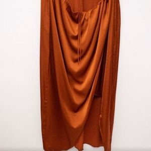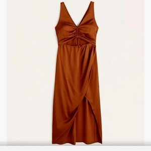 Abercrombie&Fitch Satin Cut Out V neck Ruched Rust Orange Wrap Midi Dress L