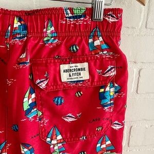 Abercrombie&Fitch Swim Trunks Shorts Red Novelty Sailing Nantucket print Sz S