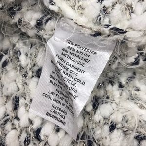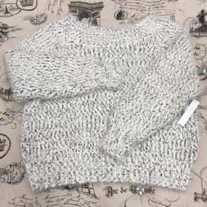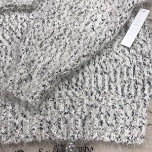 A super soft to touch, knit sweater with metallic fibers offer a unique, glistening style into any ensemble.