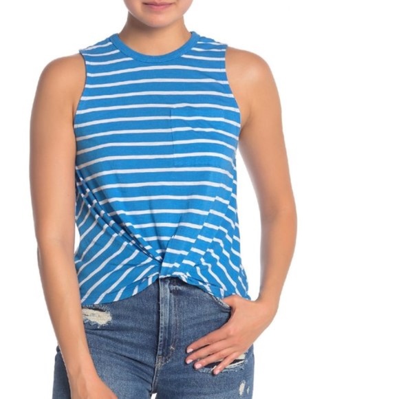 Laid back and stylish, this tank features a chest patch pocket and twist at hem.