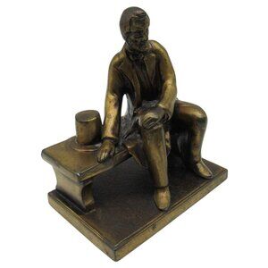 Abraham LINCOLN Sitting Metal STATUE In Antique Brass Finish Figurine Bookend Vi