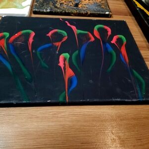 Enhance your home with this stunning abstract art canvas set. Featuring a vibrant mix of colors, these pieces are perfect for adding a modern touch to any room. all one of a kind artist signed various sizes.