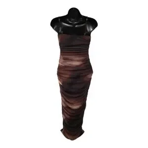Let your look do the talking in this mesh midi dress! With an eye-catching abstract print and adjustable spaghetti straps, this midi dress will show off your style while the bodycon fit and side-ruched seams enhance your curves.