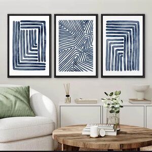 Enhance your space with this stunning abstract blue line art set. Perfect for adding a modern touch to any room.