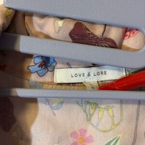 Colorful floral button-up shirt with short sleeves.