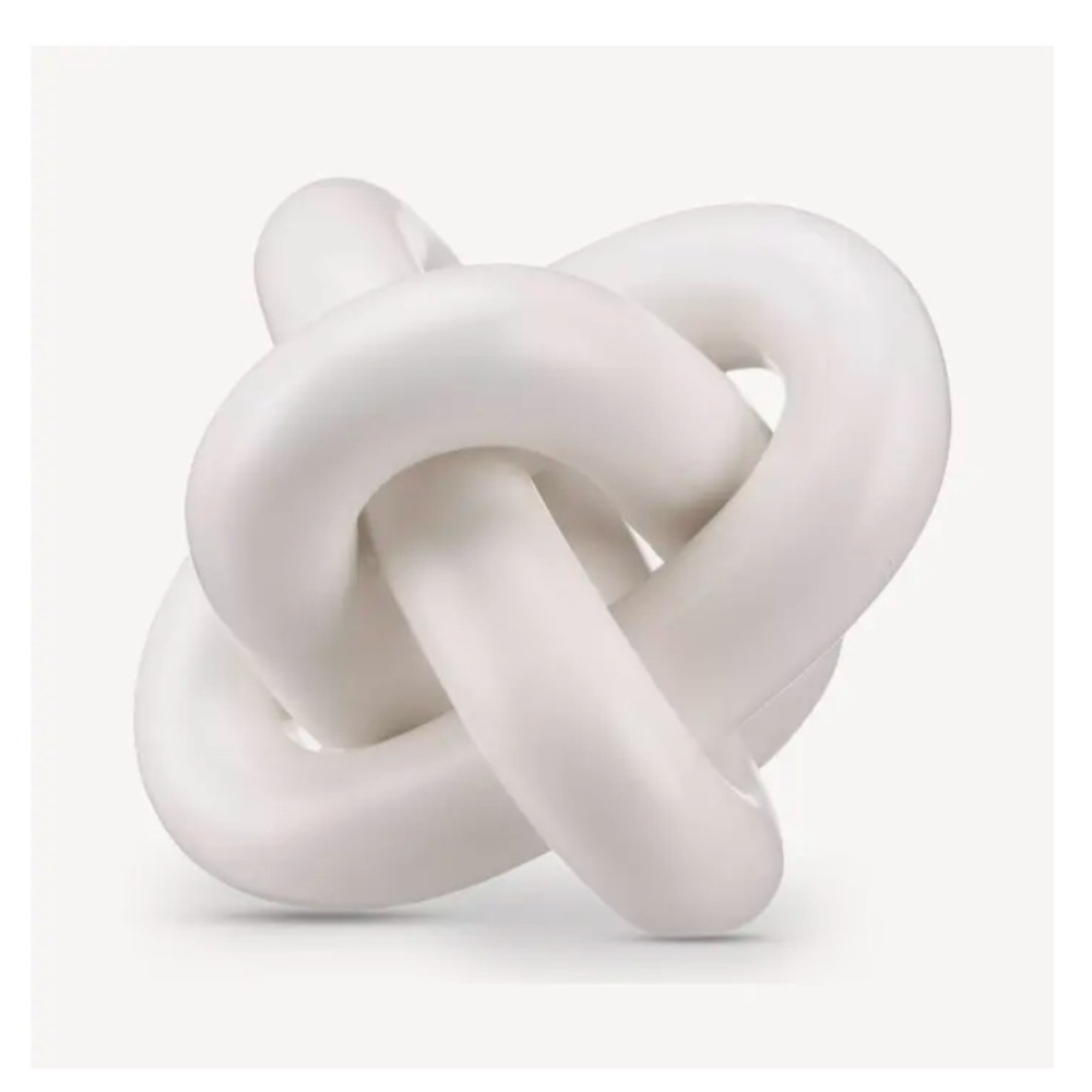 Sleek ceramic knotted into sculptural form in this modern decorative home accessory in a neutral and versatile hue.