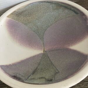 Enhance your home dining with this stunning abstract ceramic platter. Featuring a unique blend of purple and grey, this piece adds a touch of elegance to any space. Would easily hold burgers for serving at your next barbecue!