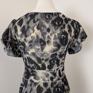 Abstract Mini Dress Sweetheart Neckline Puff Sleeves A-line Empire Waist