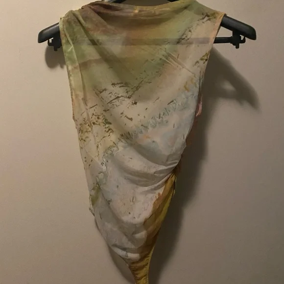 Stylish sleeveless top with an abstract multicolor design. Perfect for a unique and artistic look.