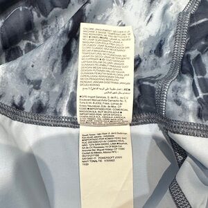 Stylish joggers with an abstract pattern. Features shades of blue and black.