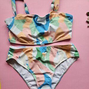 Abstract Print Bikini Set Wide Strap Tank Top & High Waist 2 Piece Bathing Suit
