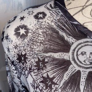 Abstract Print Lettuce Trim Sheer Mesh Top