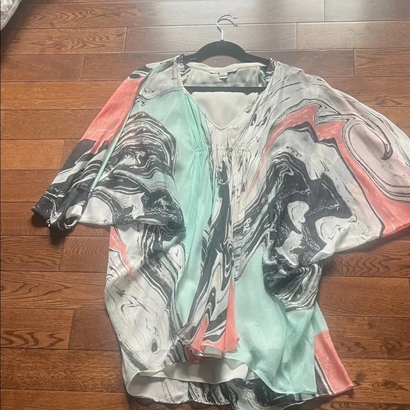 Elevate your style with this abstract print women's dress Featuring a blend of black, white, and coral colors, this top is perfect for any occasion. Enjoy the comfort and elegance it brings to your wardrobe.
