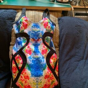 Abstract Psychedelic Stretchy Form fitting Sexy Mini Dress Party Club Large