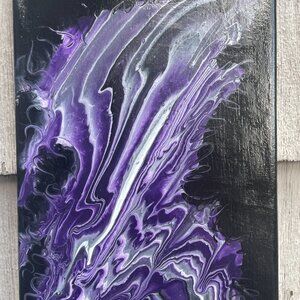 Abstract Purple Dragon Swirl Acrylic Pour Canvas Painting Signed LAM 2023 8" x 20". The painting is signed by the artist. Has one small dent on the left side about 3 inches from the bottom, there is no way you can tell unless you run your finger over it.