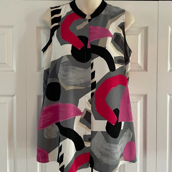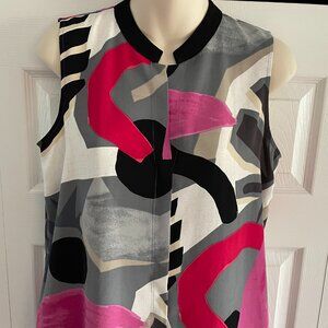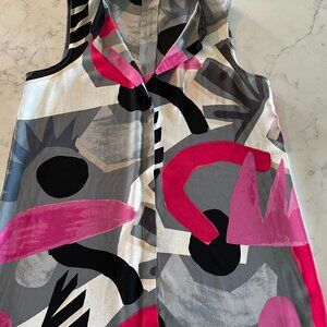 Abstract Tunic Black Pink Red White Tan Gray Sleeveless