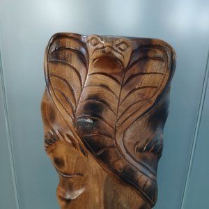 Abstract Wooden Mask Artwork VTG Hand Carved Wall Art Cobra Fish Man 20"
