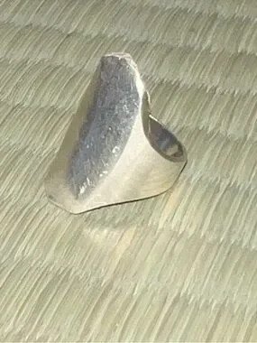 I haven’t seen another ring like this. Looks like a shield ring, and then sometimes a large signet ring. Bold but minimal at the same time.