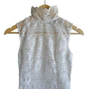 Abyss by Abby, white lace dress, crochet lace dress, bridal shower dress, mock neck mini dress, Abys by Abbi