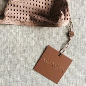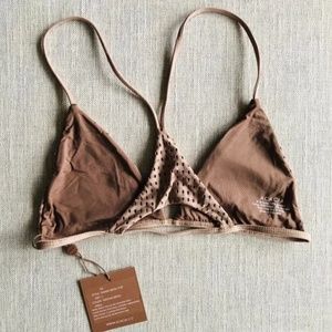Mesh fixed triangle top with racerback and keyhole detail on back.
