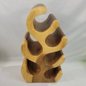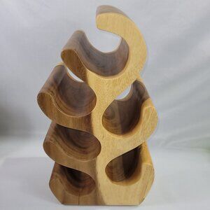 Acacia Wood 6 Wine Bottle Rack 20" Stand Solid Hand Carved