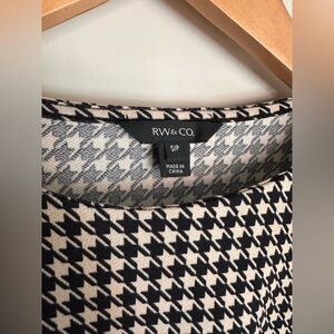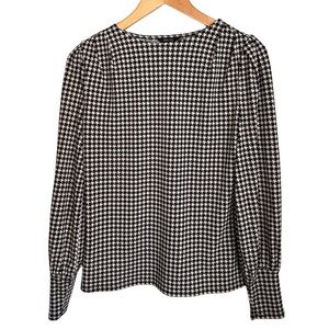 Sophisticated and timeless, this RW&CO. houndstooth blouse adds instant polish to your workwear or smart casual wardrobe. Features a classic black-and-cream houndstooth print, crew neckline, and cuffed long sleeves for a refined silhouette.
