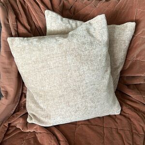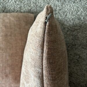 Set of two super soft throw cushion in a pale blush with grey weave. Absolutely love these cushions but have changed colors in home.