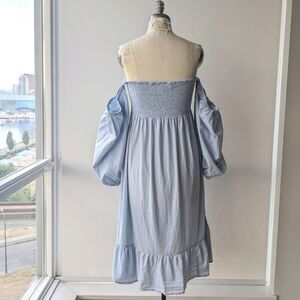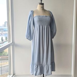 Accessorize London - Cotton/Linen Balloon Sleeve Powder Blue Dress