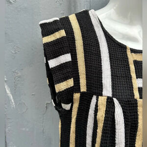 Cap sleeve billowy striped top featuring a jewel neckline. Made by artisans in India.