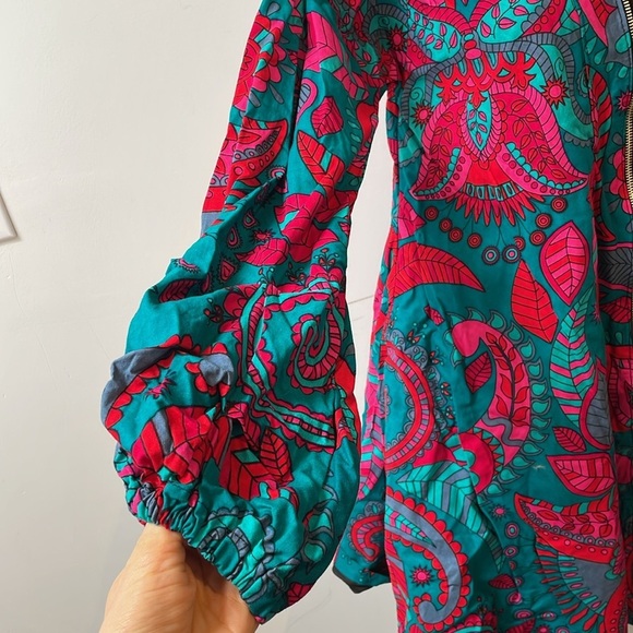 Ace Kouture Amauche Dress Jacket Floral Zipper Belt Cotton Pink Blue Small