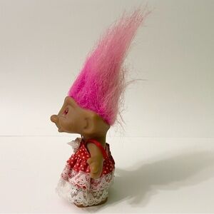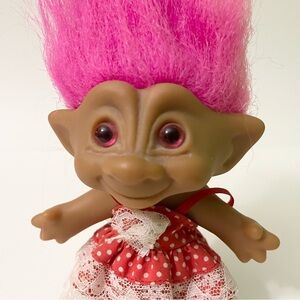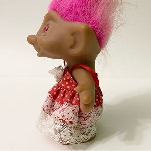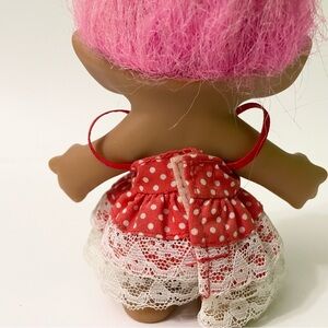 Ace Novelty Troll Doll with Pink Hair and Red Dress Pink Jewel
