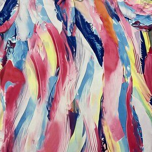 Color/Pattern: Multicolor abstract brushstroke print (pink, blue, yellow, white)
