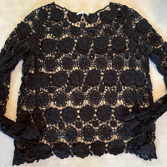 Acemi Black Crochet Lace Top. Long sleeve. Large. Vintage look.