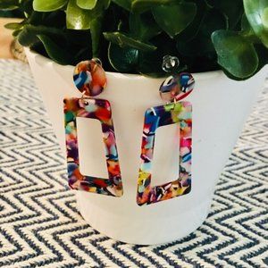 NEW Acetate Dangle Earrings , Rectangle Earrings, Geometric Acrylic , Amber Tortoise Shell Round Circle