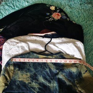 Very unique acid wash denim jacket. It's lined and has a subtle quilted feel. Also, features some amazing embroidery throughout.
