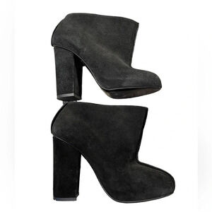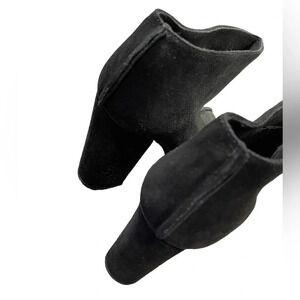 In amazing condition- no notable flaws. Acne is a very unique designer and these are a very rare find:) Crafted in Italy from plush black suede. This pair comes with a chunky block heel. They have an elastic band that hold to the top of your foot for extra security. They are slip on’s. They have such an edge to them that they would compliment any outfit. Size 36, which is a 5.5-6 US Please be sure if your size before purchasing:)
