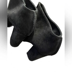 In amazing condition- no notable flaws. Acne is a very unique designer and these are a very rare find:) Crafted in Italy from plush black suede. This pair comes with a chunky block heel. They have an elastic band that hold to the top of your foot for extra security. They are slip on’s. They have such an edge to them that they would compliment any outfit. Size 36, which is a 5.5-6 US Please be sure if your size before purchasing:)