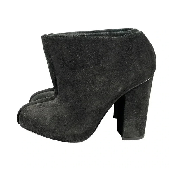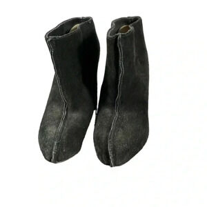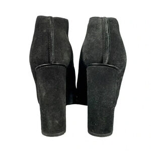 In amazing condition- no notable flaws. Acne is a very unique designer and these are a very rare find:) Crafted in Italy from plush black suede. This pair comes with a chunky block heel. They have an elastic band that hold to the top of your foot for extra security. They are slip on’s. They have such an edge to them that they would compliment any outfit. Size 36, which is a 5.5-6 US Please be sure if your size before purchasing:)