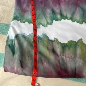 Worn once and dry cleaned! Digital print inspired tie-dye slip midi dress with white-out patches. Straight fit. V-neck with single front crisscross seam for added shape. Side zip closure. Subtle side slits at bottom hem. Color: Green Pastel Mix. 100% Viscose. Euro size 34