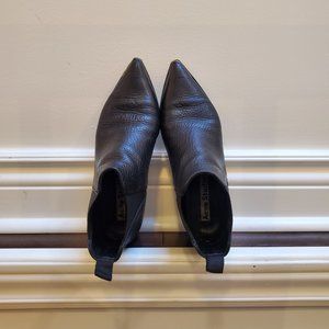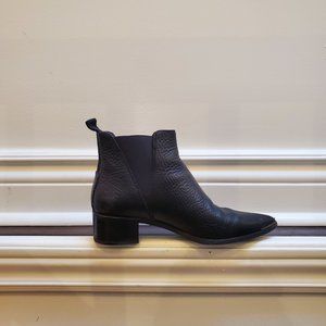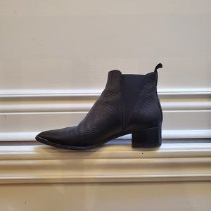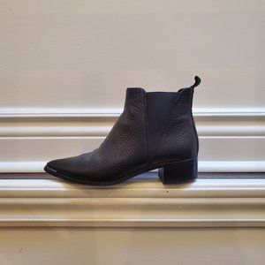 Acne 'Jensen' Ankle Boots in Black Grained Leather (a nice, subtle pebble texture). IT 37 or US 7. Made in Italy. In good, but worn condition -- heels slightly uneven though a resoling would fix this, a bit of wear at the toe tips, very minor rubbing on the inside heel leather and some natural creasing from wear. They look broken in, but in good shape. Nice leather smell. A classic style and surprisingly fairly comfortable (I say this as someone with a wide front foot who finds all shoes uncomfortable). Can be dressed up or down. The pointy toe gives it a bit of extra spice that's fun to flaunt. They served me well, but ready for them to move on and have a second life. Let me know if you have any questions!