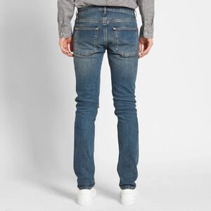 Acne Studios mid blue jeans are cut to a slim fit with a low waist, skinny leg and regular length. The Max jeans are crafted from comfort stretch denim made of a cotton blend.