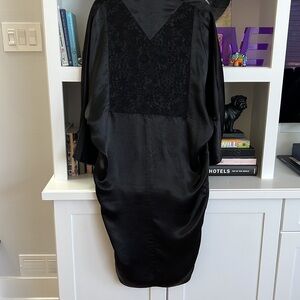 Robe style satin dress. Beautiful floral overlay details. EU size 32 (XS) but will easily fit a small. In pristine condition.
