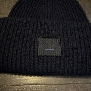 Acne Studios Face logo beanie navy hat OS 56cm