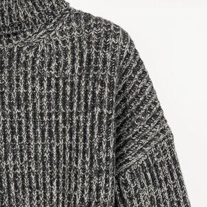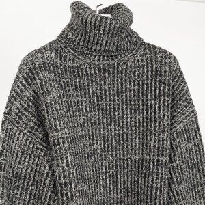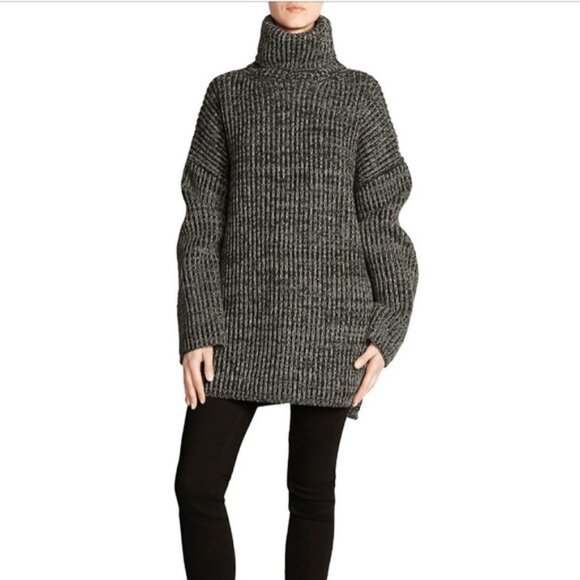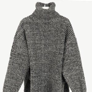 This sweater from Acne Studios is crafted in a marled grey wool ribbed knit, and features long sleeves, a foldover turtleneck, an oversized bodice, and side slits.