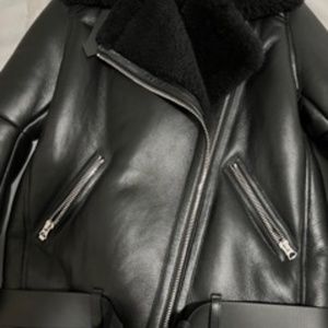 The oversized shearling Velocite jacket from Acne Studios is a signature silhouette that’s sold out and hard to find! Super warm and cozy jacket, crafted in pitch-black leather with silver-tone zips and buckles. Unfortunately it's too small for me. Looks like new, only worn twice.